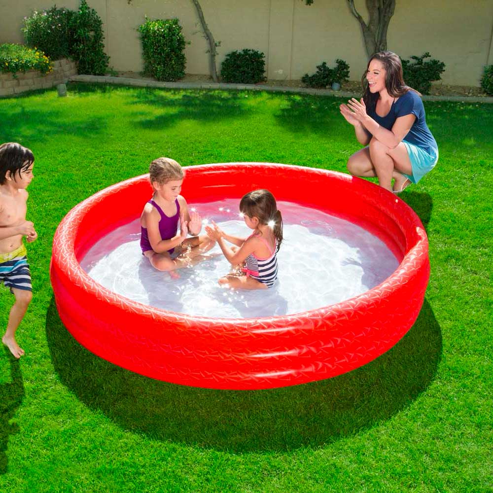 Preparati al divertimento estivo con questa piscina gonfiabile a 3 anelli, caratterizzata da un'elegante tinta unita. Con un generoso diametro di 183 cm e un'altezza di 33 cm, è perfetta per rinfrescare tutta la famiglia o per permettere ai bambini più grandi di giocare comodamente. Realizzata in vinile resistente, è facile da gonfiare e sgonfiare, garantendo ore di svago e relax nel tuo giardino.