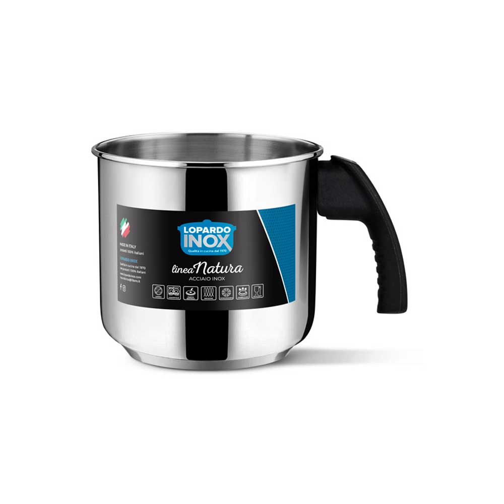 Bollilatte in acciaio inox con un diametro di 14 cm, ideale per scaldare latte e altre bevande. Il suo design resistente e la capacità di garantire una cottura uniforme lo rendono un accessorio pratico e durevole per la cucina. Facile da pulire, è perfetto per l'uso quotidiano.